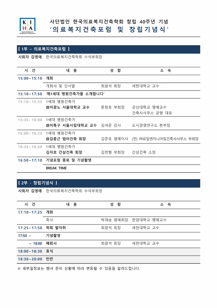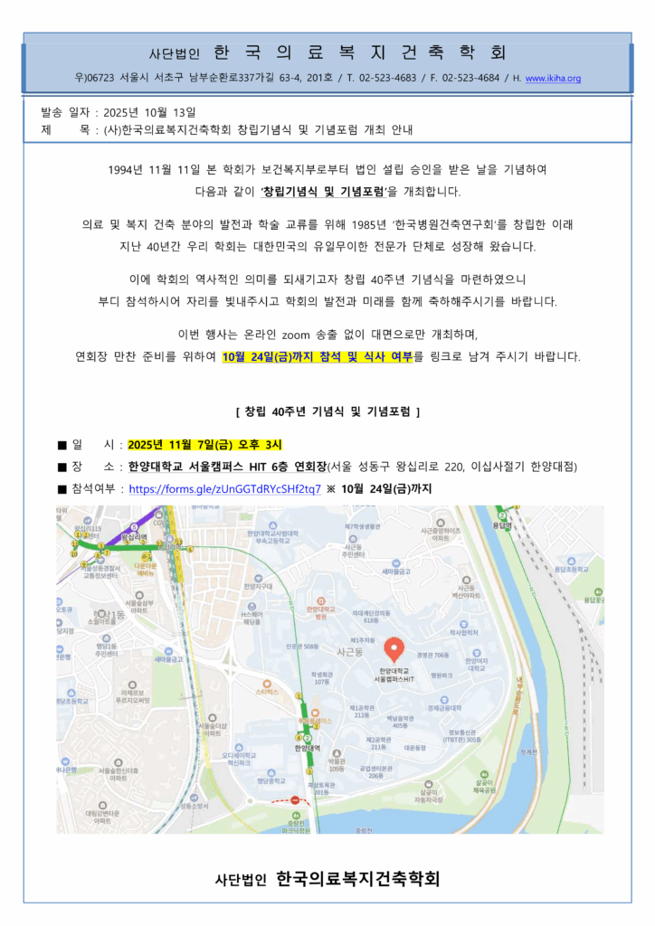 한국의료복지건축학회 창립 40주년 포럼 및 기념식