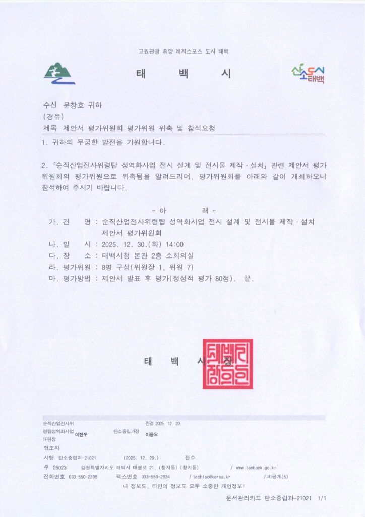 태백시 순직산업전사위령탑 성역화사업 전시안 심사