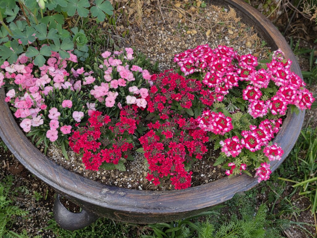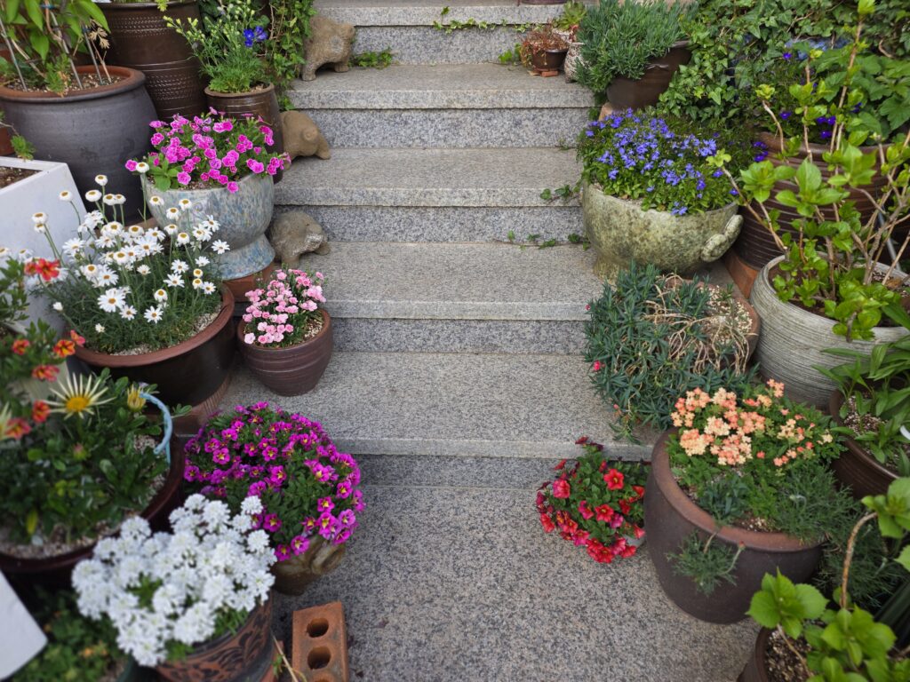 집사람이 봄을 맞이하여 그간 사 모으고 가꾸고 있는 많은 화분에 꽃이 좋다. 매일 즐거운 마음으로 꽃을 돌보는 것 같다. 오늘도 맥도널드 점심 후 아이스아메리카노 한잔 사와서, 정원 둥근 탁자에 앉아서 꽃과 나무를 둘러보면서 시간을 보냈다.