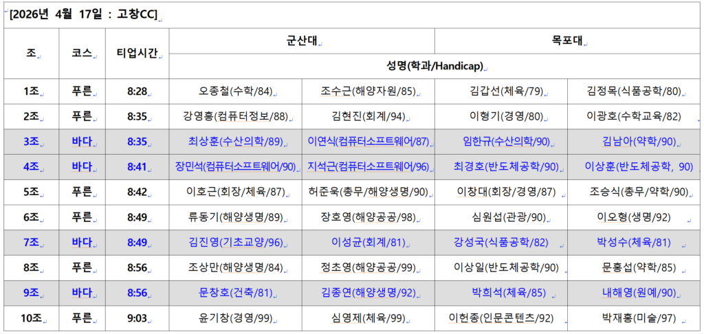 - 14 : 00 점심식사 및 시상식(고창CC 클럽하우스 레스토랑)