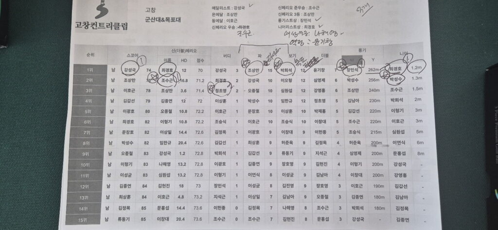 - 우승(전체스코어), 신페리오 우승, 롱기스트, 니어리스트, 행운상(열정상), 뽑기